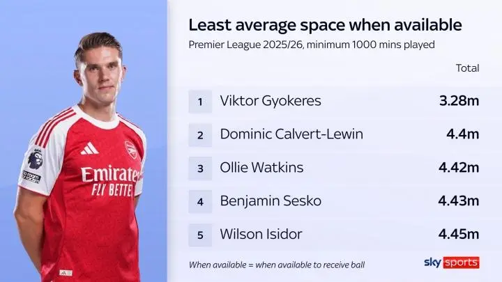天空体育表示,哲凯赖什是英超赛场上获得活动空间最少的球员。联赛杯对阵切尔西比赛的表现或许表明,这位瑞典前锋终于开始适应他在阿森纳面临的挑战。